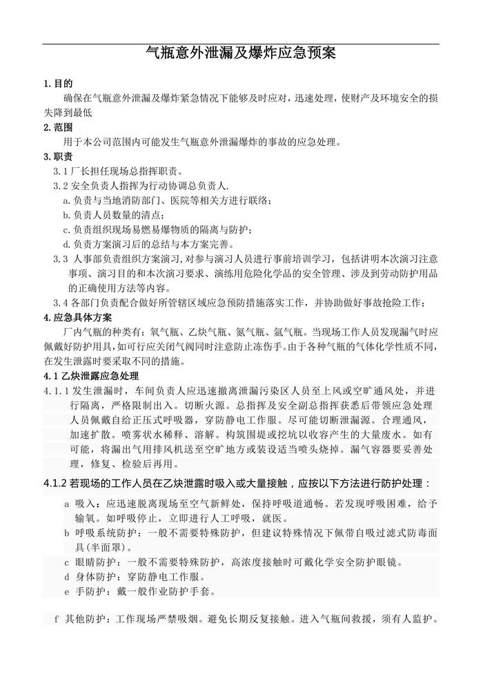 氣瓶意外泄漏及爆炸應(yīng)急預(yù)案(3頁)doc