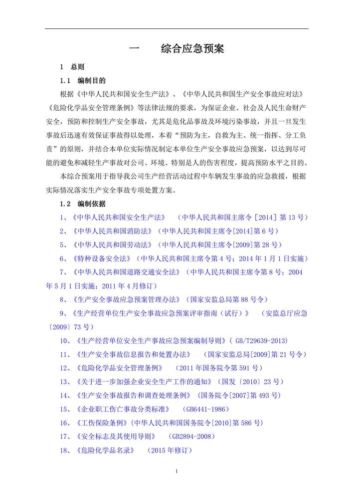 新版危險化學(xué)品運輸企業(yè)應(yīng)急預(yù)案(60頁)doc
