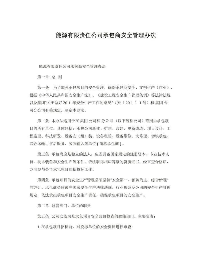 能源有限責任公司承包商安全管理辦法docx