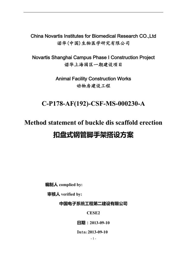 扣盤式鋼管腳手架搭設(shè)方案(中英文)(1)doc