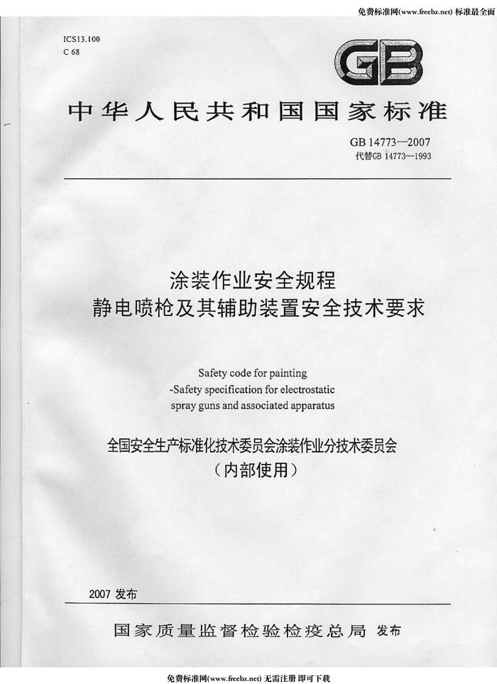 2007 涂裝作業(yè)安全規(guī)程 靜電噴槍及其輔助裝置安全技術(shù)條件pdfpdf