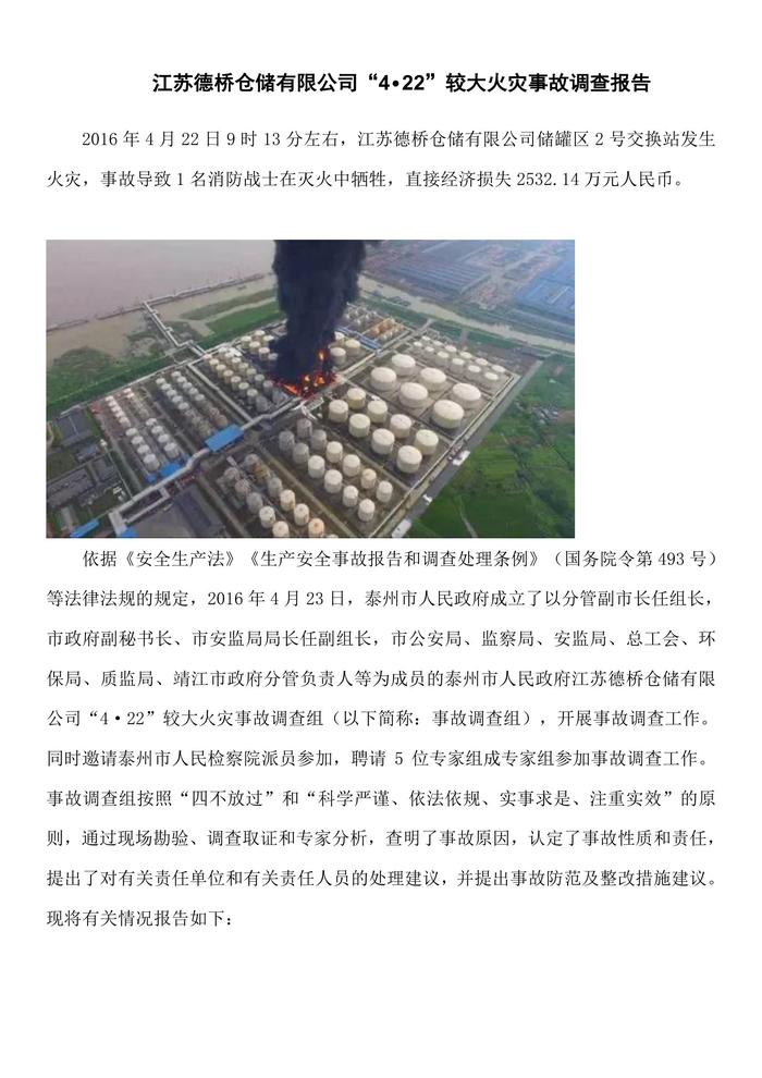 江蘇德橋倉儲有限公司“4?22”較大火災(zāi)事故調(diào)查報(bào)告doc