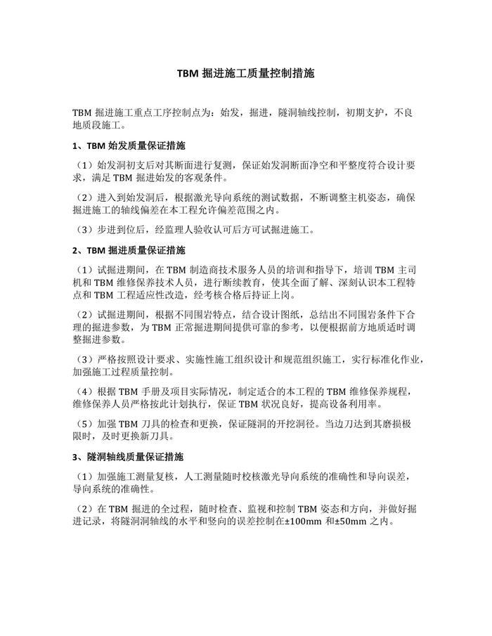 TBM掘進(jìn)施工質(zhì)量控制措施docx