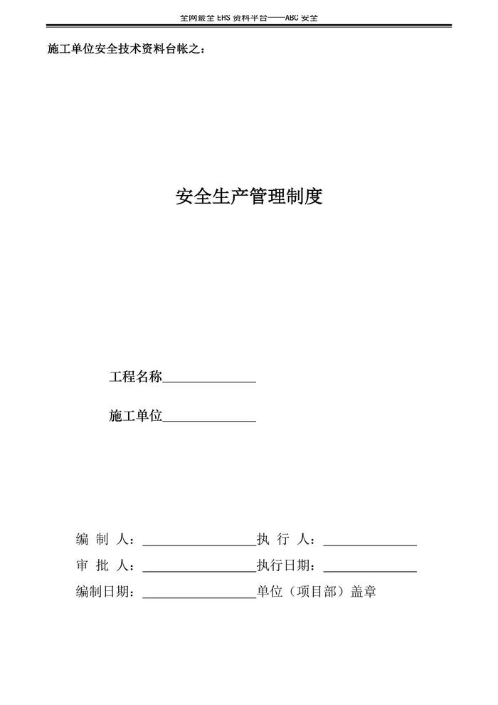 施工單位安全技術(shù)資料臺賬1:安全生產(chǎn)管理制度doc