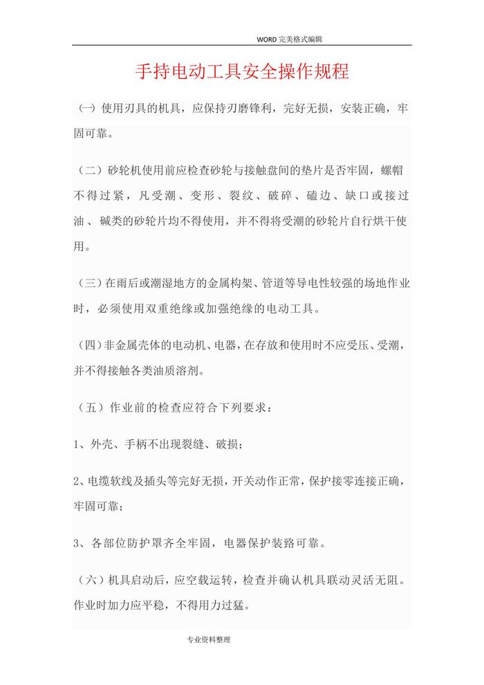 手持電動工具安全操作規(guī)程完整doc