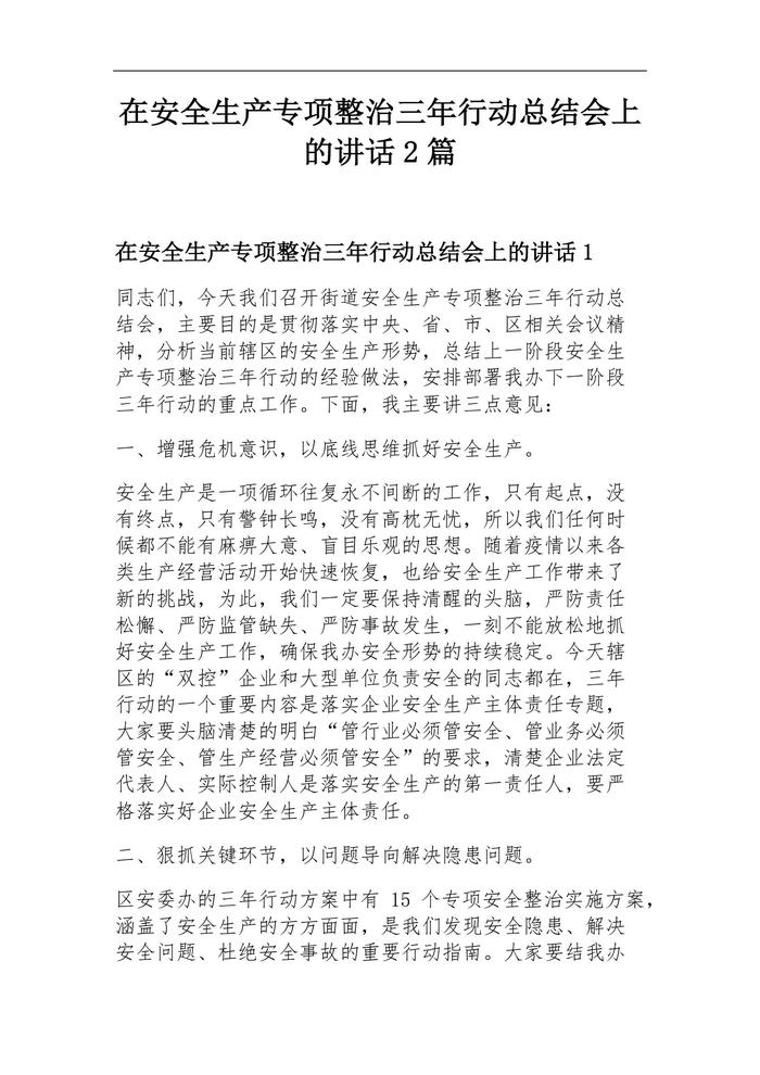 安全生產(chǎn)專項(xiàng)整治三年行動(dòng)總結(jié)會(huì)講話2篇docx