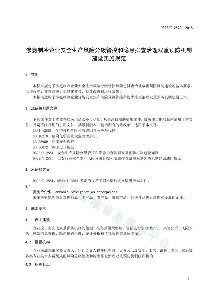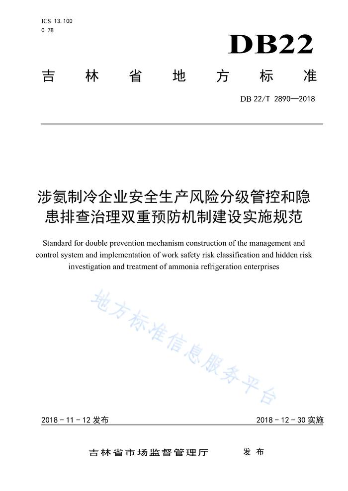 DB22T 2890-2018 涉氨制冷企業(yè)安全生產(chǎn)風(fēng)險(xiǎn)分級(jí)管控和隱患排查治理雙重預(yù)防機(jī)制建設(shè)實(shí)施規(guī)范pdf