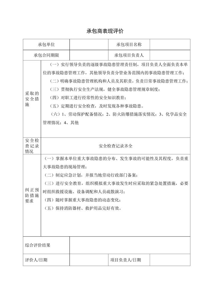 合格承包商檔案評(píng)價(jià)表、表現(xiàn)評(píng)價(jià)doc