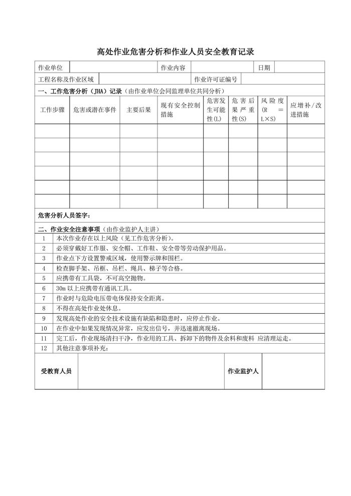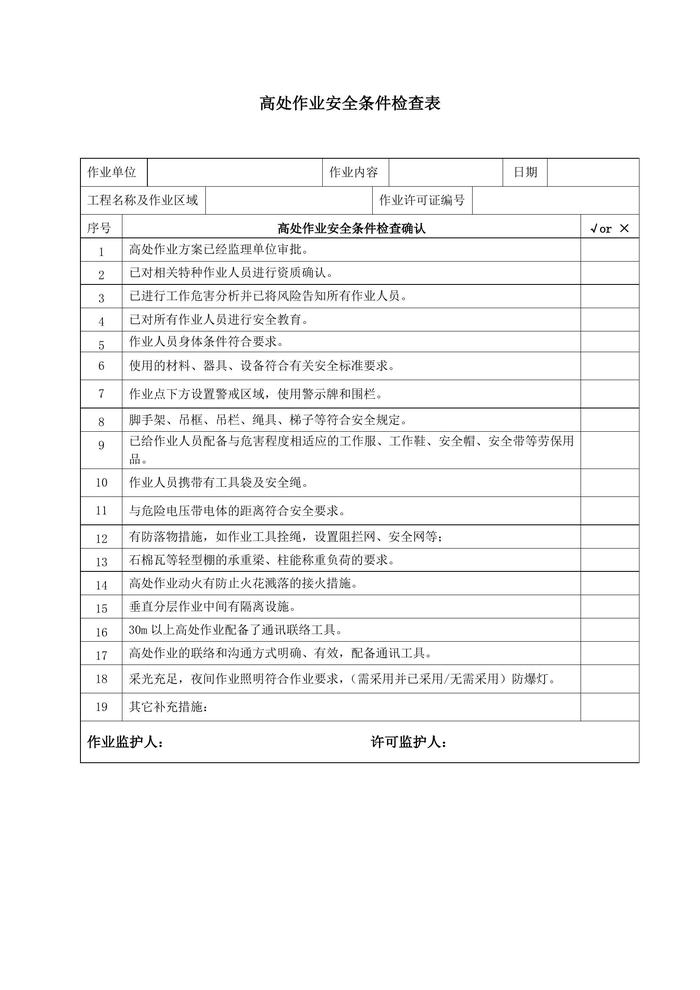 高處作業(yè)許可證及相關(guān)表格docx