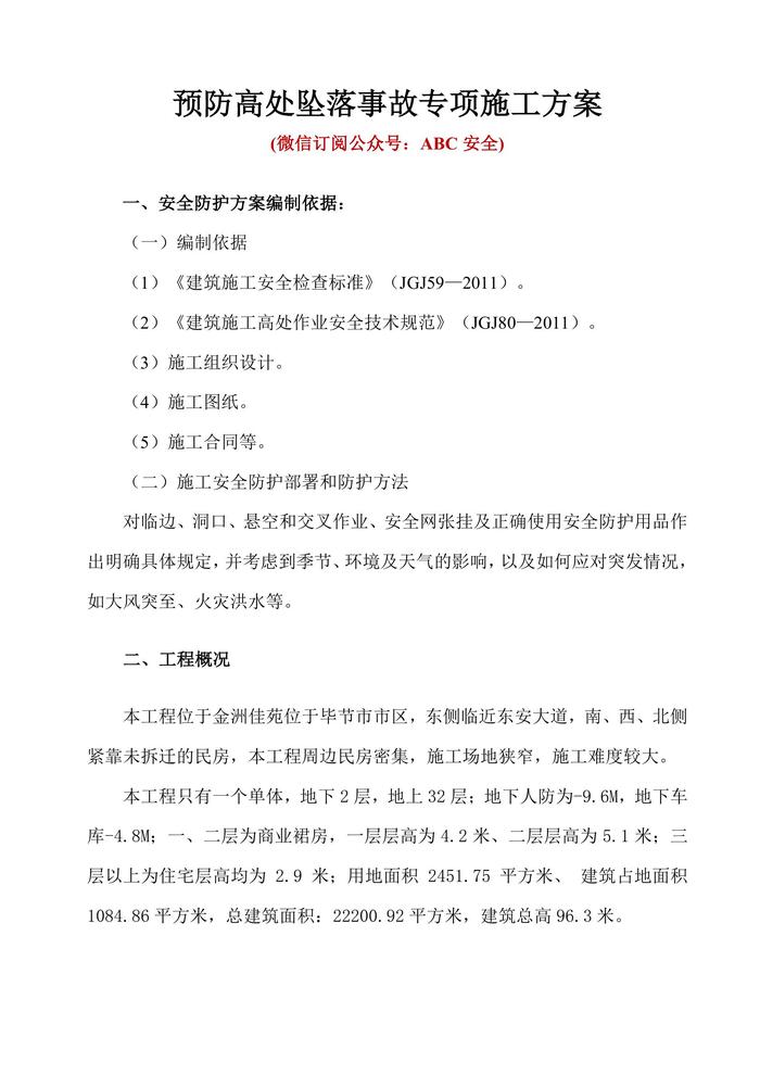 預(yù)防高處墜落事故專項施工方案doc