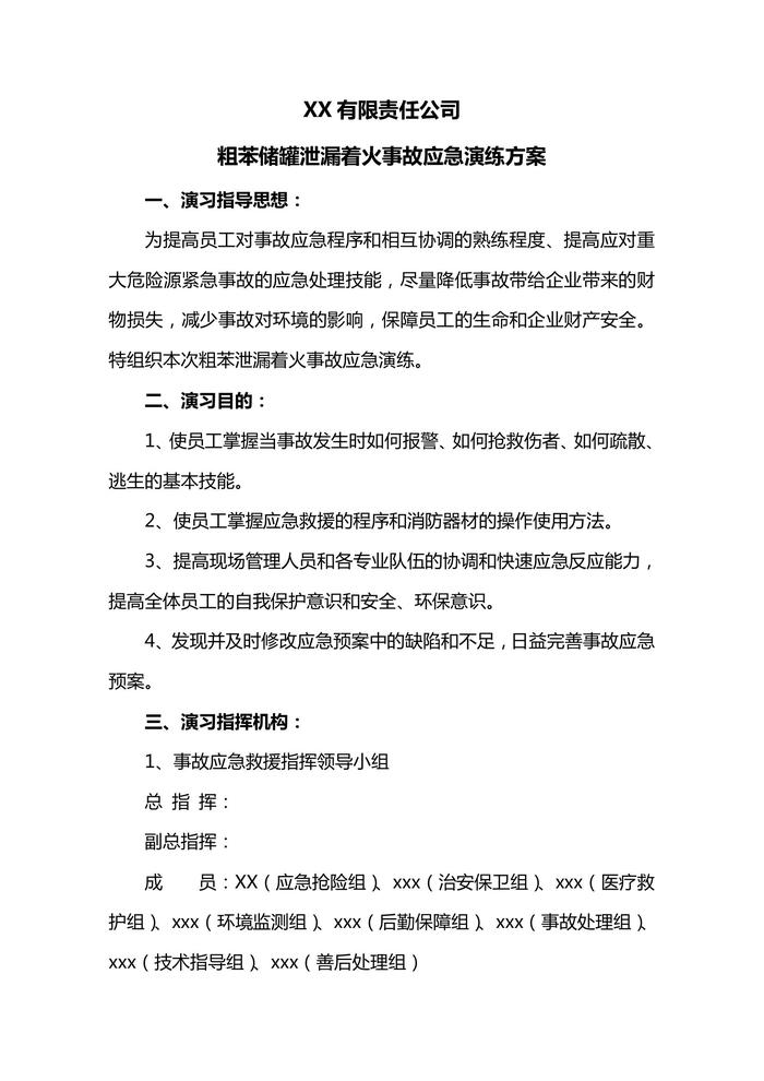 XX公司粗苯泄漏著火事故演練方案(定)(1)doc