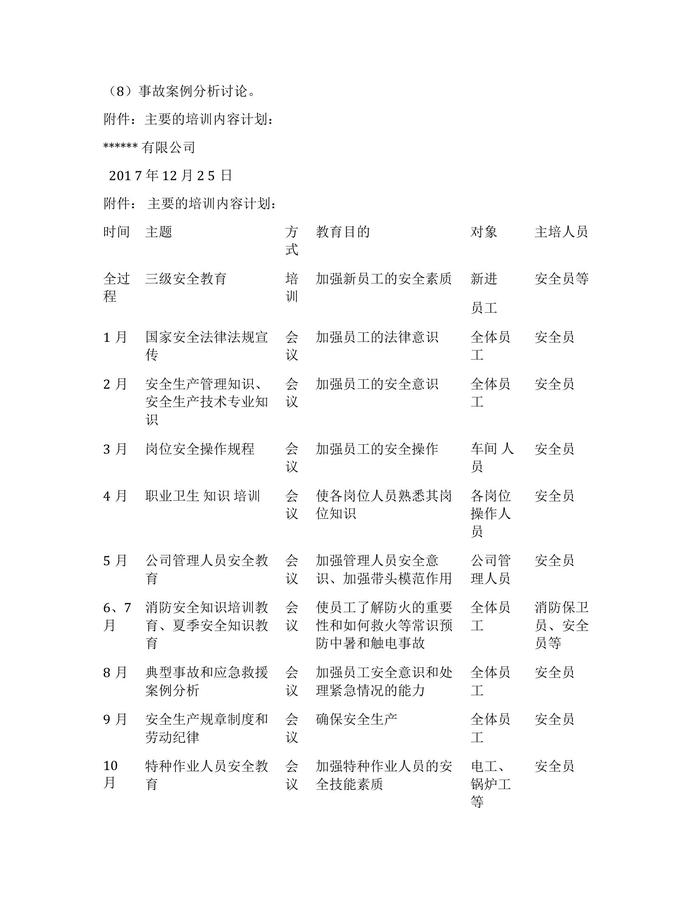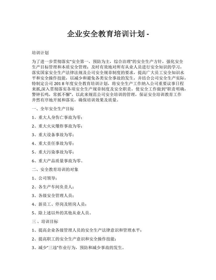 企業(yè)安全教育培訓計劃(1)docx