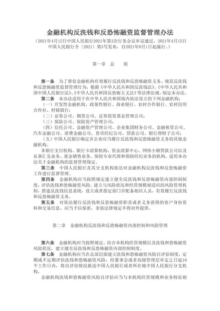 金融機(jī)構(gòu)反洗錢和反恐怖融資監(jiān)督管理辦法doc
