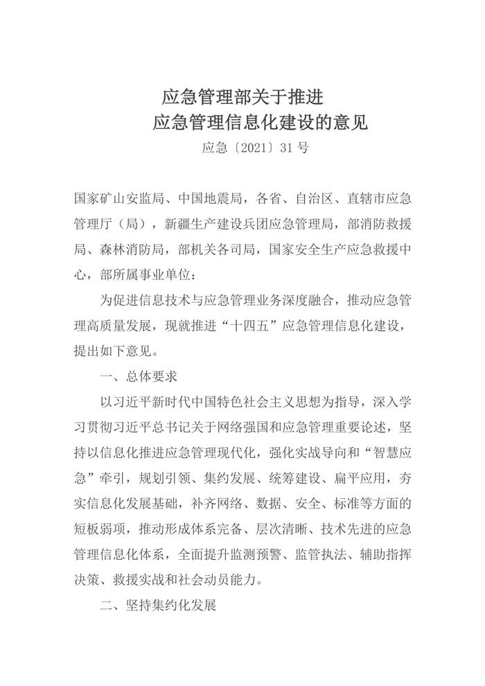 2021年5月發(fā)布《應(yīng)急管理部關(guān)于推進(jìn)應(yīng)急管理信息化建設(shè)的意見》docx