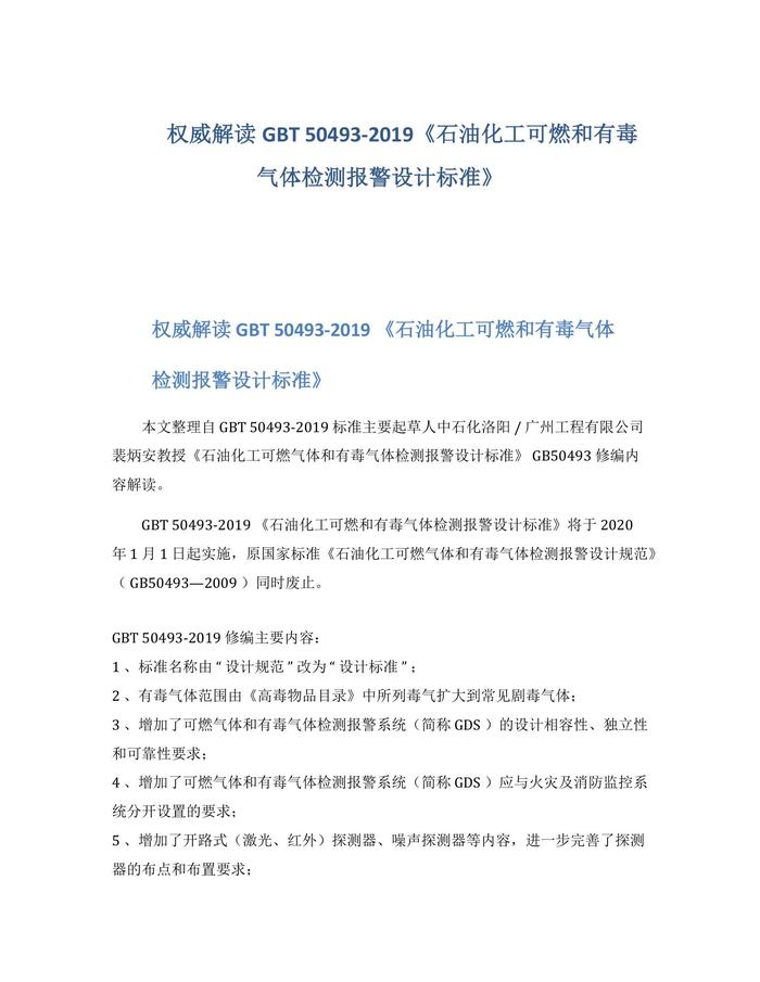 解讀GBT50493-2019《石油化工可燃和有毒氣體檢測報警設(shè)計標(biāo)準(zhǔn)》docx