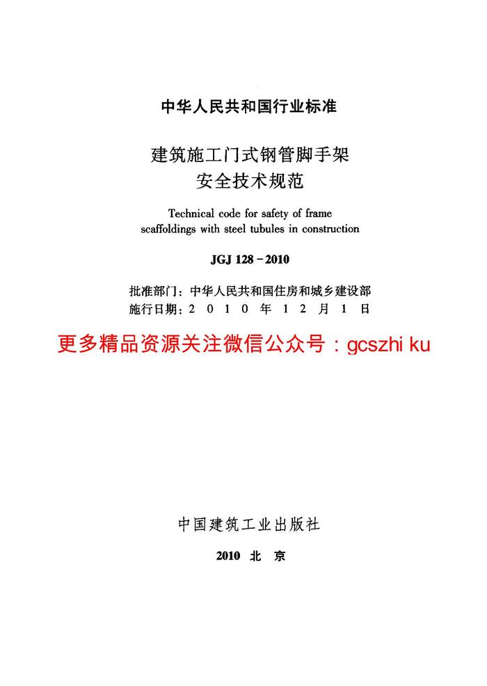 10 建筑施工門式鋼管腳手架安全技術(shù)規(guī)范pdf