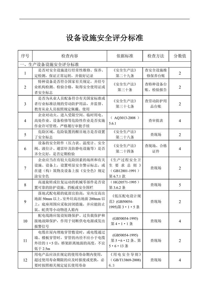 設(shè)備設(shè)施安全檢查評分標(biāo)準(zhǔn)doc