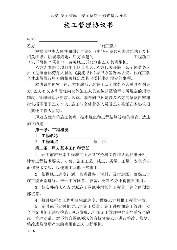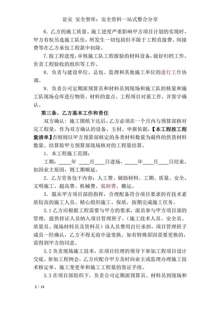 施工隊(duì)工程承包協(xié)議及安全協(xié)議(1)doc