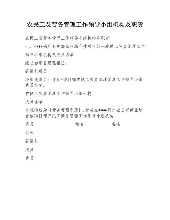 農(nóng)民工及勞務(wù)管理工作領(lǐng)導(dǎo)小組機(jī)構(gòu)及職責(zé)(1)docx