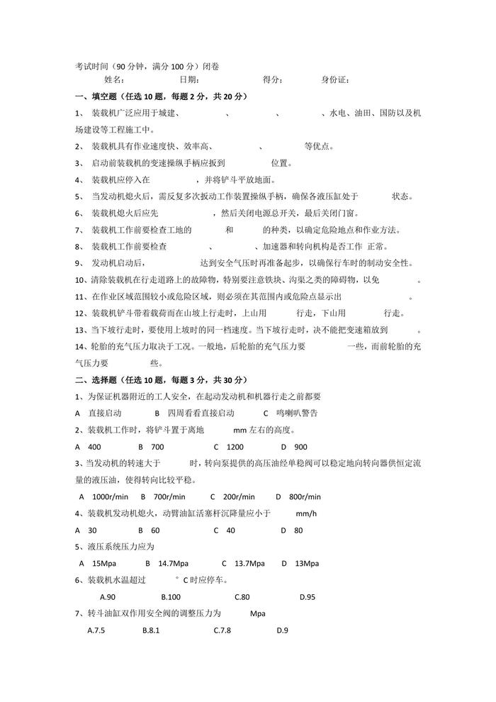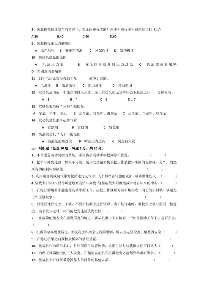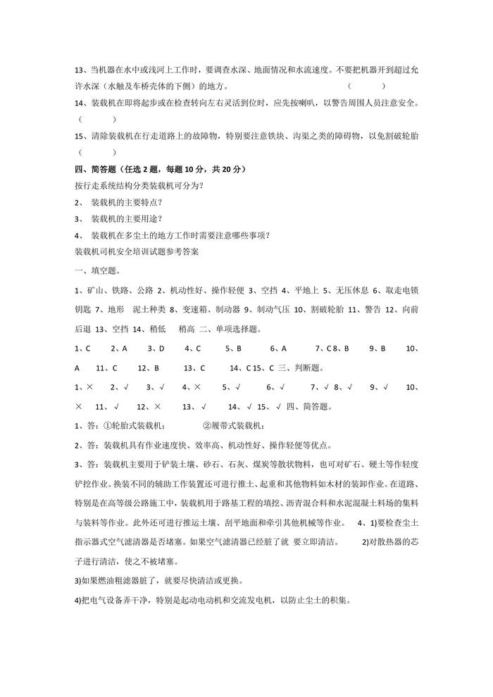 A20220306裝載機(jī)司機(jī)安全培訓(xùn)試題doc