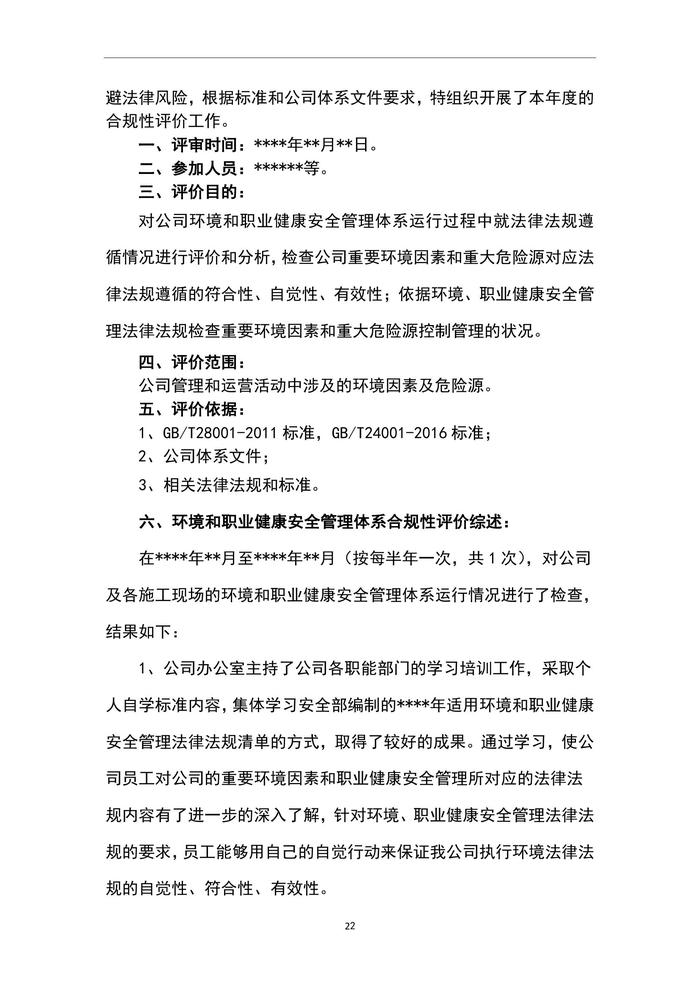 全套環(huán)境、職業(yè)健康安全合規(guī)性評價報告(14頁)(1)doc