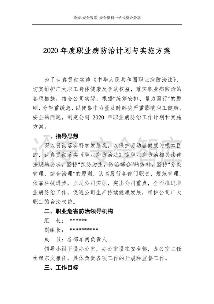 【計劃】2020年度職業(yè)病防治計劃與實施方案doc