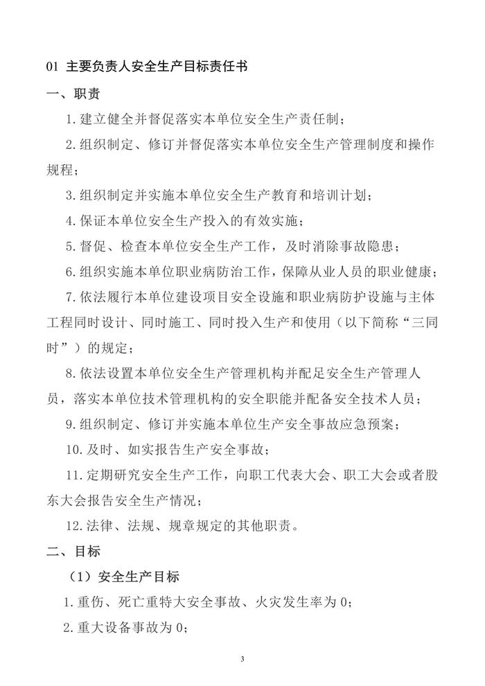 企業(yè)各層級(jí)崗位安全生產(chǎn)目標(biāo)責(zé)任書匯編docx