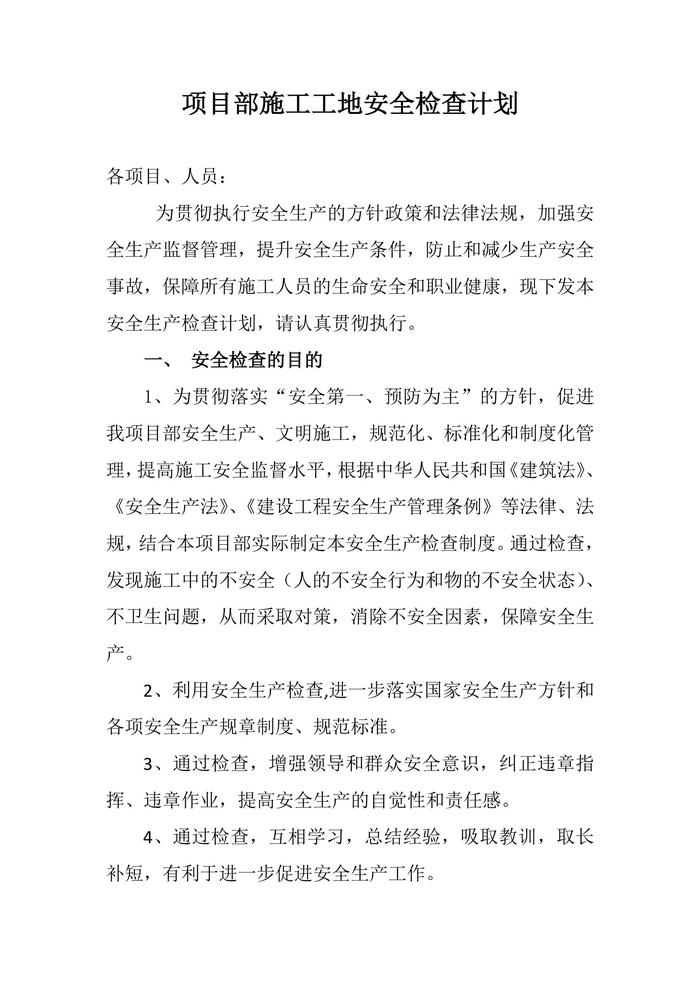 項目部施工工地安全檢查計劃(9頁)docx