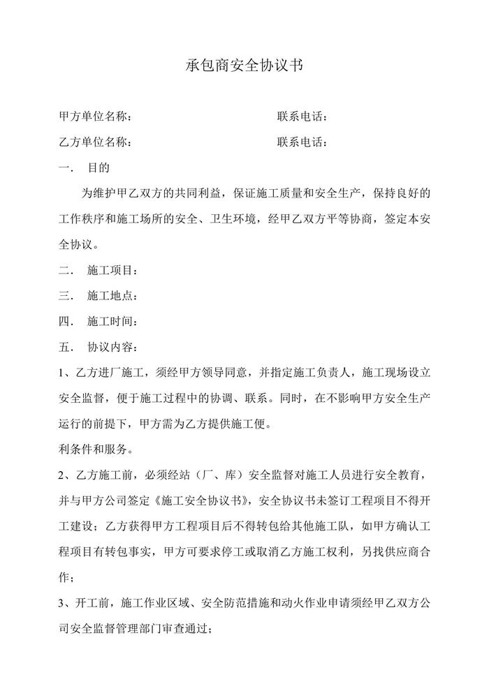 11承包商安全協(xié)議書doc