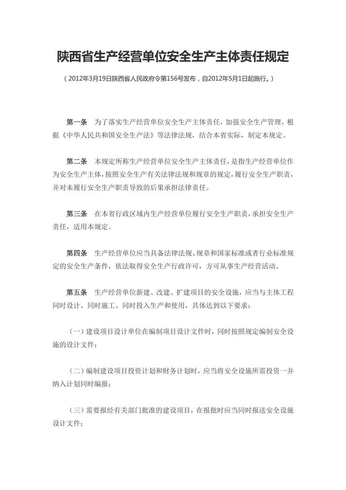 陜西省生產經(jīng)營單位安全生產主體責任規(guī)定 (2)doc