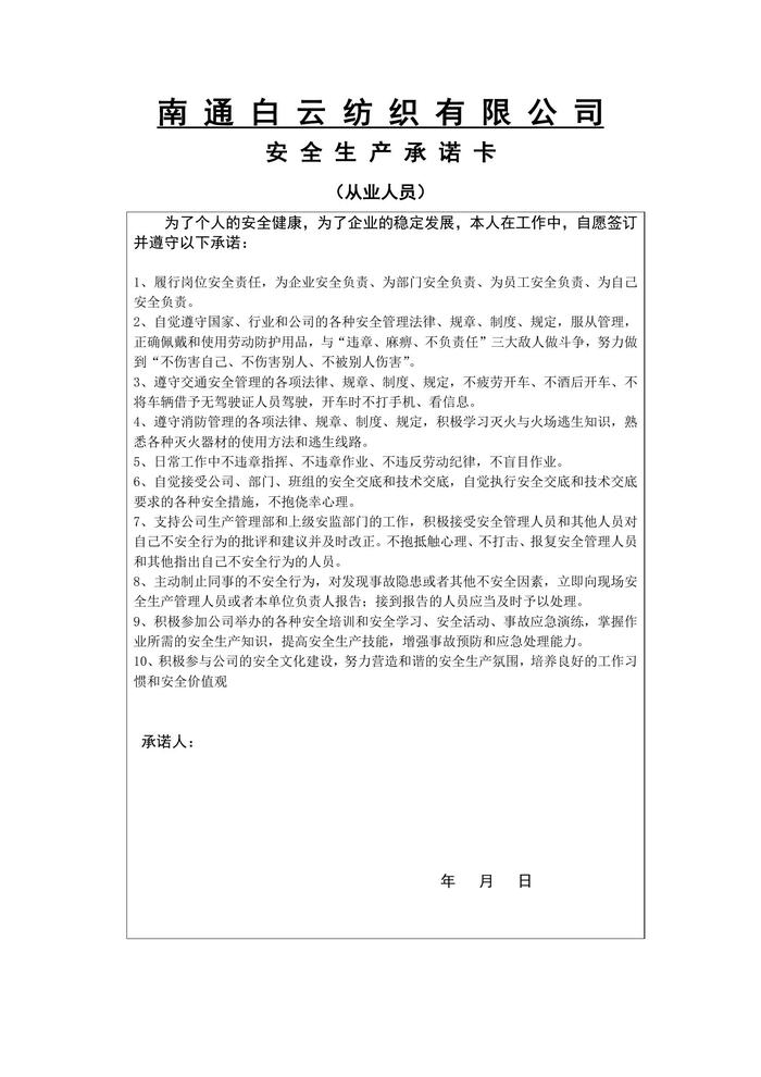安全生產(chǎn)承諾卡doc