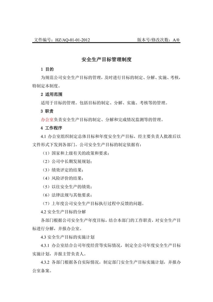 01-01-安全生產(chǎn)目標(biāo)管理制度doc