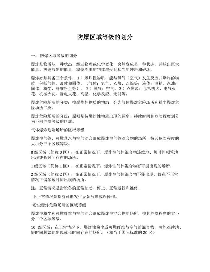 防爆區(qū)域等級的劃分docx