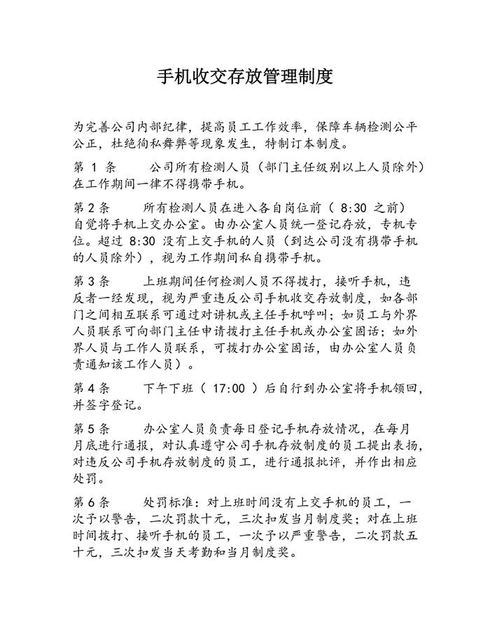手機(jī)收交存放管理制度docx
