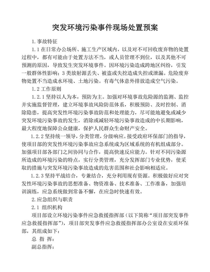 N20210716 突發(fā)環(huán)境污染事件現(xiàn)場處置預(yù)案docx