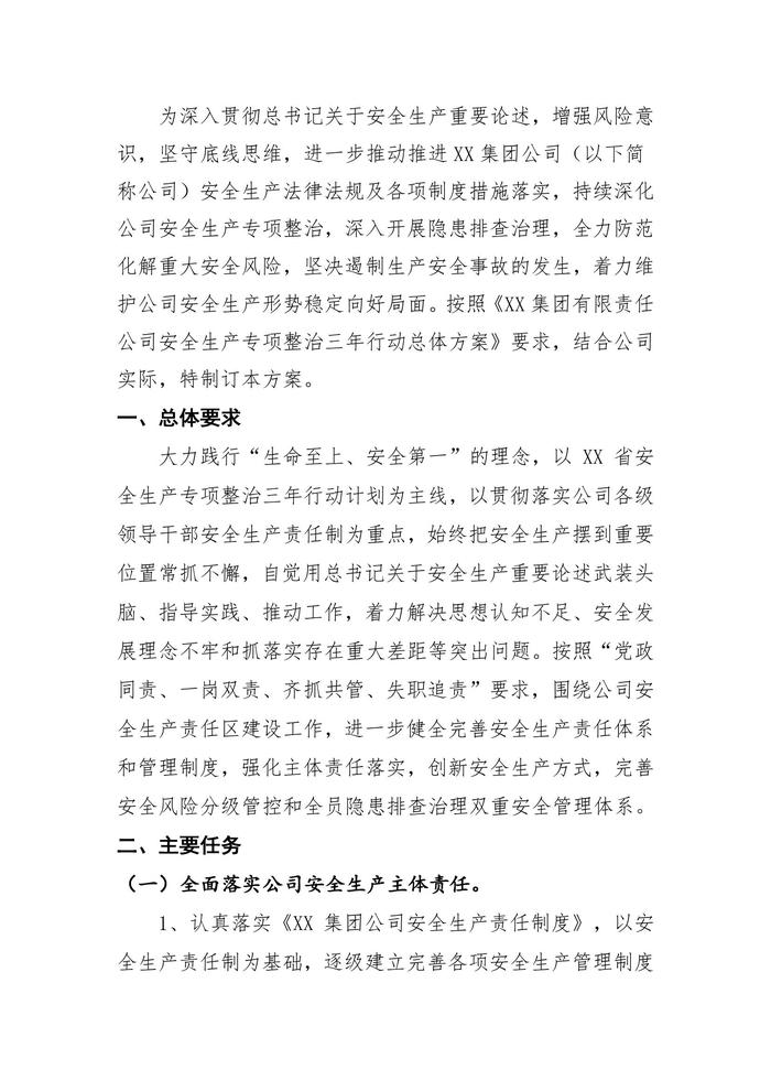 集團(tuán)公司安全生產(chǎn)專項整治三年行動總體方案(參考模板)(1)docx