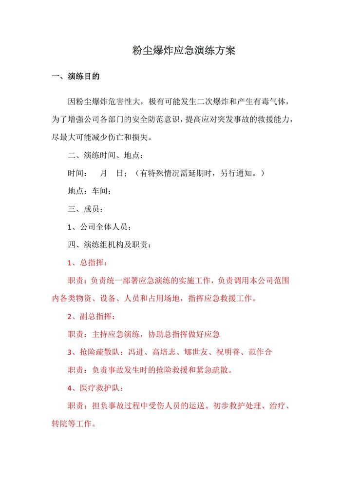 【演練方案】粉塵爆炸應(yīng)急演練方案(4頁)docx