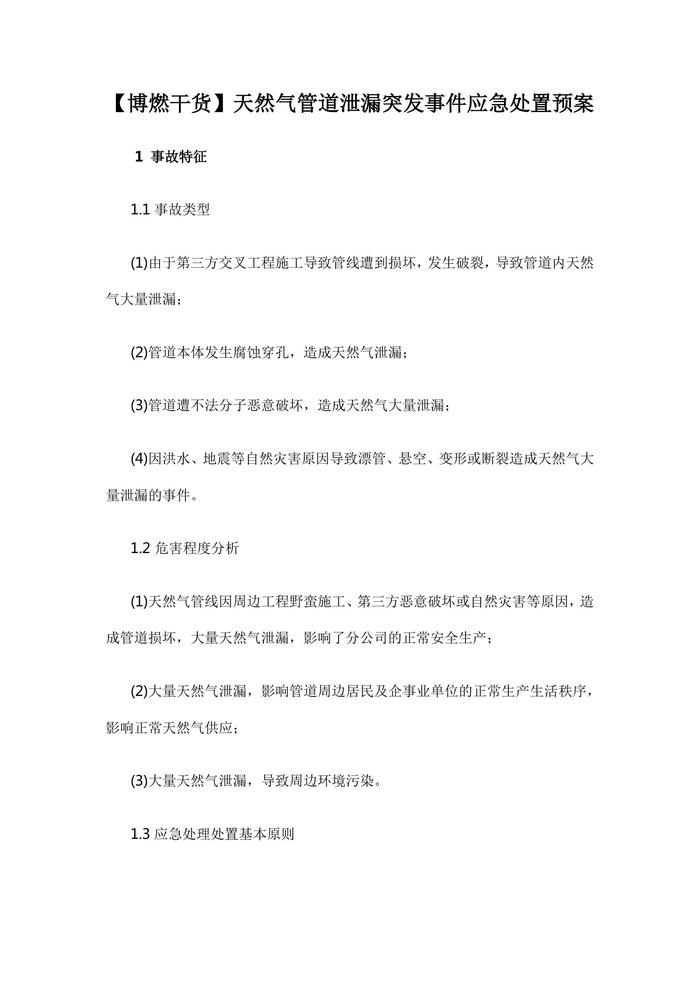【博燃干貨】天然氣管道泄漏突發(fā)事件應(yīng)急處置預(yù)案pdf