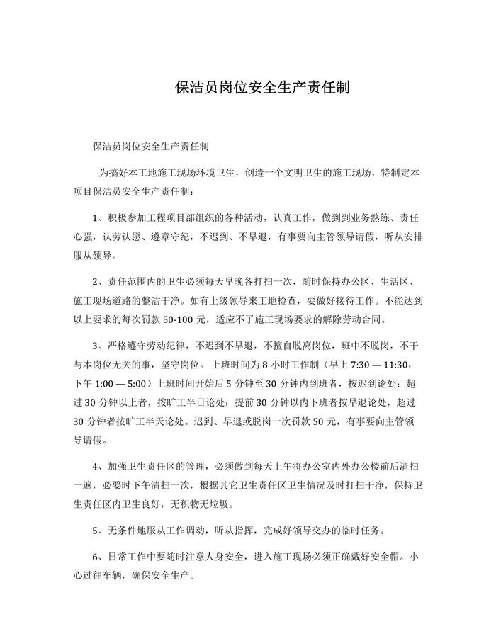 保潔員崗位安全生產(chǎn)責(zé)任制docx