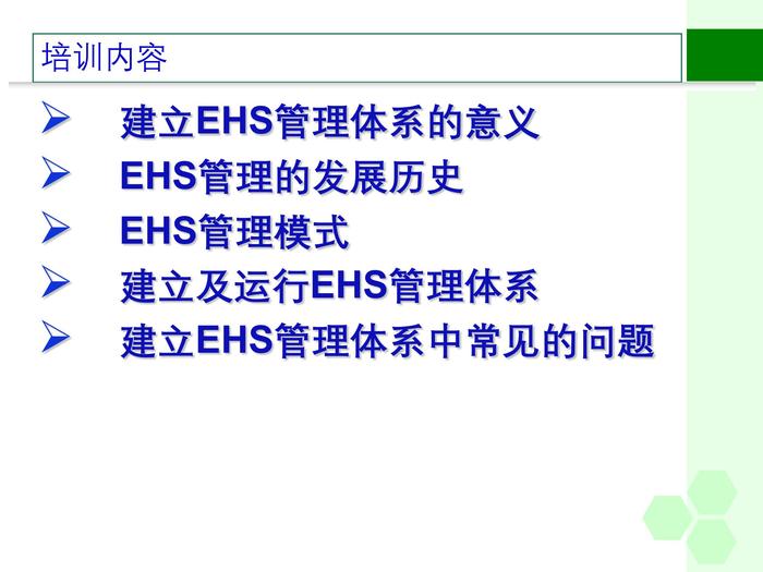 環(huán)境、健康與安全(EHS)管理體系領(lǐng)導(dǎo)意識培訓(xùn)ppt 環(huán)境、健康與安全(EHS)管理體系領(lǐng)導(dǎo)意識培訓(xùn)ppt
