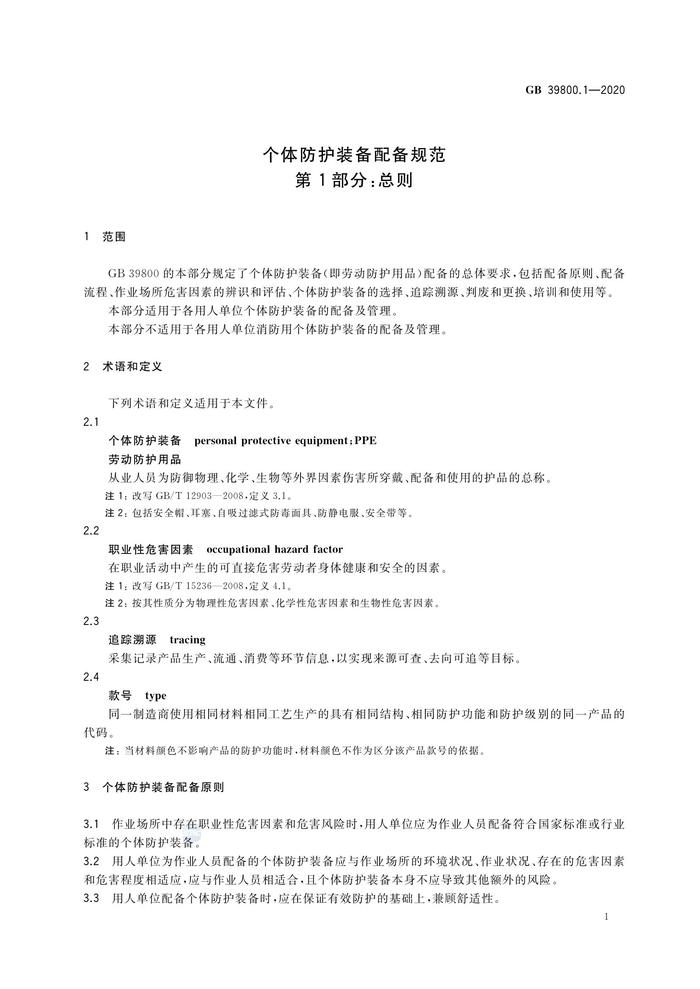 GB398001-2020個體防護裝備配備規(guī)范總則pdf