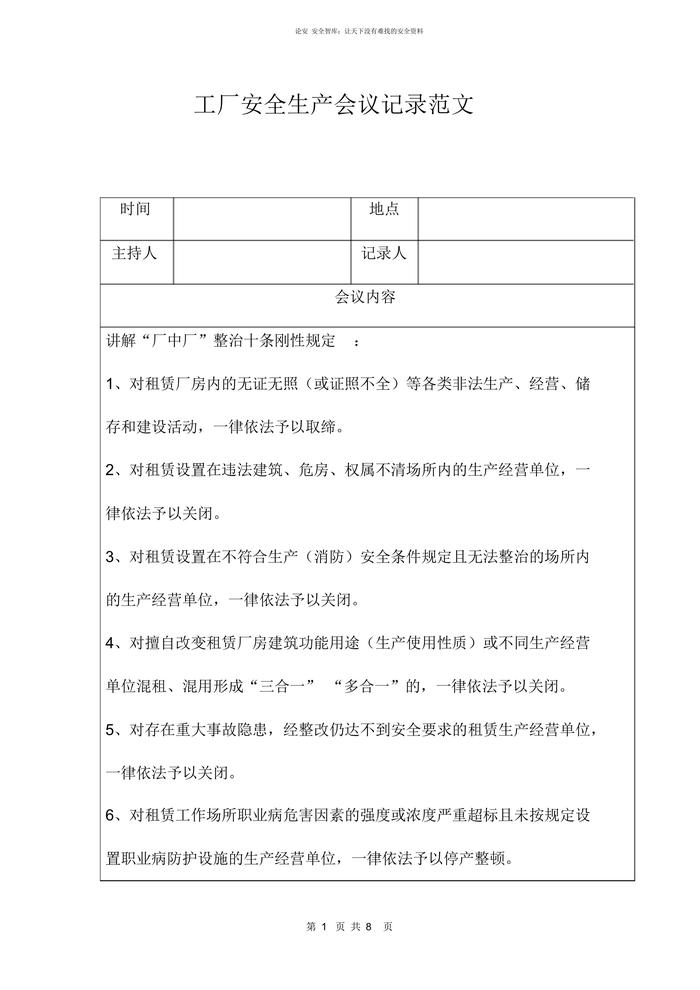工程安全生產(chǎn)會議記錄范文(1)docx