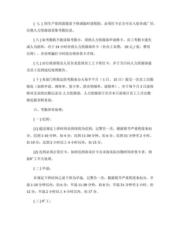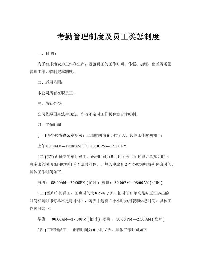 考勤管理制度及員工獎(jiǎng)懲制度(1)docx