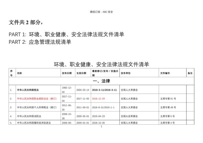 、環(huán)境、職業(yè)健康、應(yīng)急管理法規(guī)清單docx