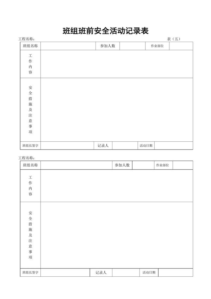 施工安全內(nèi)業(yè)資料全套表格docx