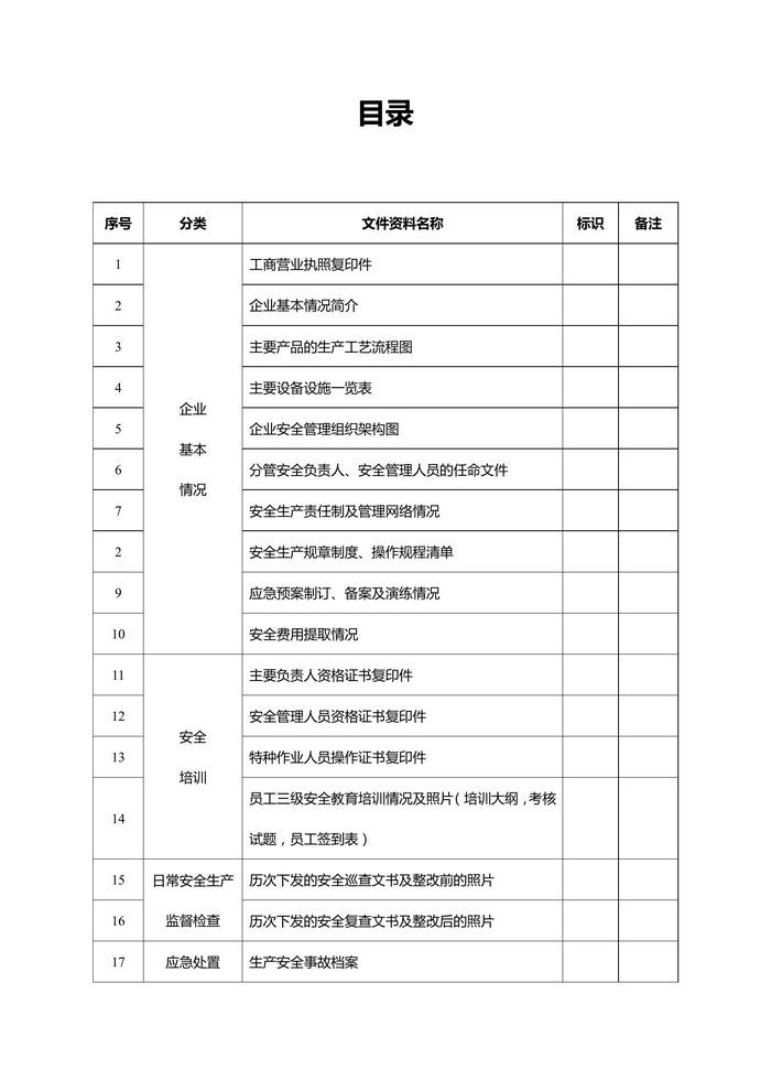 安全生產(chǎn)一企一檔(參考模板)docx
