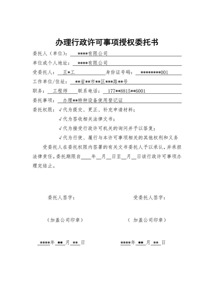 特種設備領取使用登記證授權委托書doc