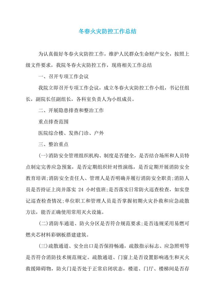 冬春火災防控工作總結doc