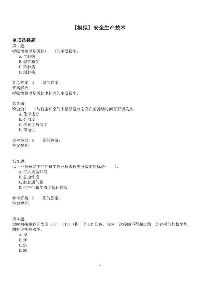 安全生產(chǎn)技術(shù)模擬題docx