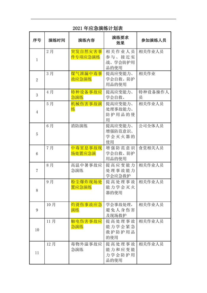 A20220320年度應(yīng)急預(yù)案演練計劃表docx